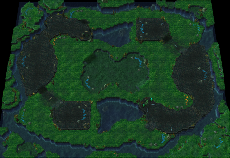 I still think the gold minerals in the middle make it too cluttered. Its looks to me like the backbone of movement in the map. Should be treated more like an arena/battle area than an expansion imo.