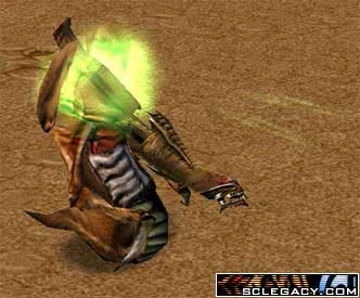 You can see that Warcraft 3 got the pose kind of wrong— they didn't angle the back carapace at all, flaps just open up from the back of it, and the head stretches down out of the way, when it should have tilted up. The WC3 pose puts the widest part of the frill below the firing pouches, while the sprite pose puts the widest part above them, allowing the spines to fire on either side.