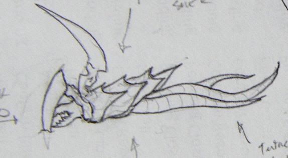 Most of the swollen sacs that allow the Broodlord to fly are located below the body, along with the smaller tentacles that dangle below. Most of the specifics are still in rough concept sketches, cause I wanted to see some feedback & opinions & then do revisions.