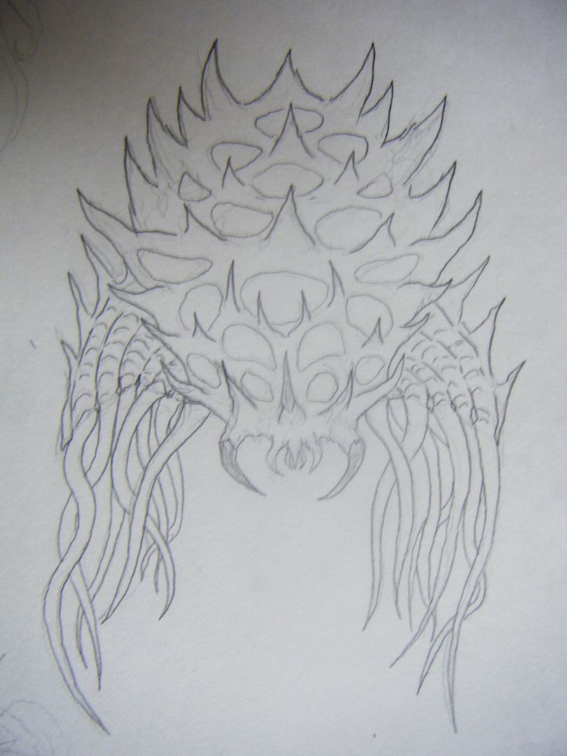The three claw arms around the face are opened up, one as a fused spike, and the two other along the front. The rest of the facial area's still rough, cause I'm not quite sure what I wanted to do with it.